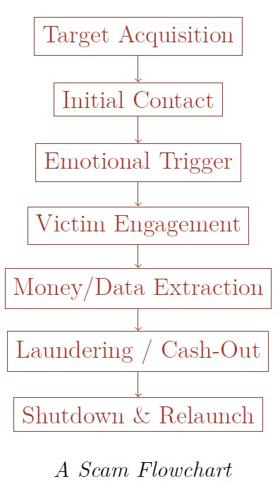 Furthermore, we can expose the plot of a typical scam to see how it works step by hideous step. By disrupting it at any intermediate step, the whole scheme falls apart.
